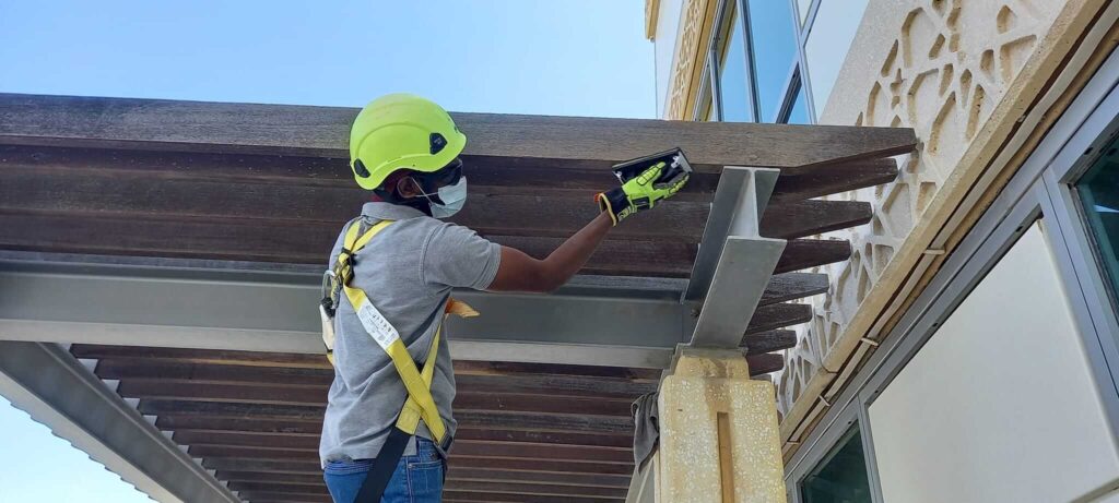 Paint building exteriors, facades, fences, and roofs with waterproof, weatherproof, and UV-resistant finishes.